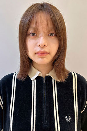 肩ラインのワンレングスボブ。顔まわりに軽いレイヤー入り。カラーは11レベルのマロンブラウン。
