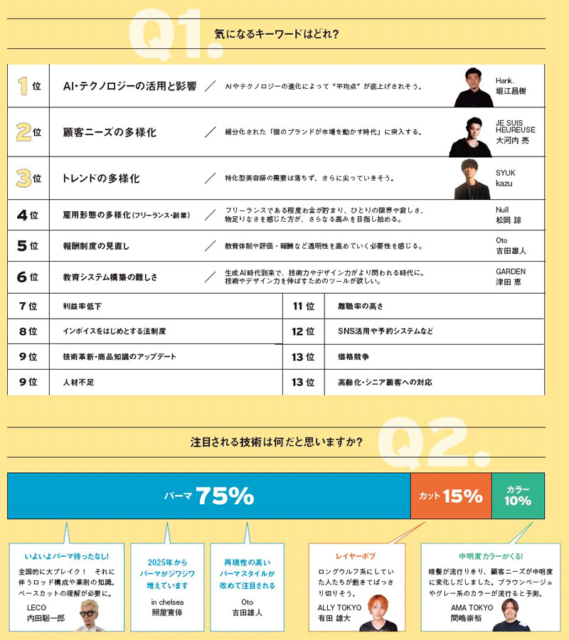 働く環境や価値観が多様になるなか、チームの団結力や信頼感が重視されていく。サロン拡大や店舗展開などで無理に広げるのではなく、目の届く範囲で質を高めるサロンが増えていくと感じる。