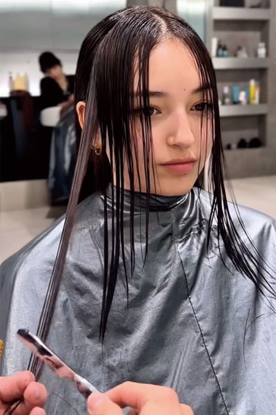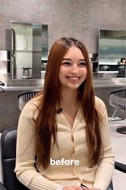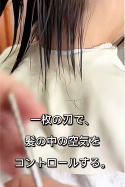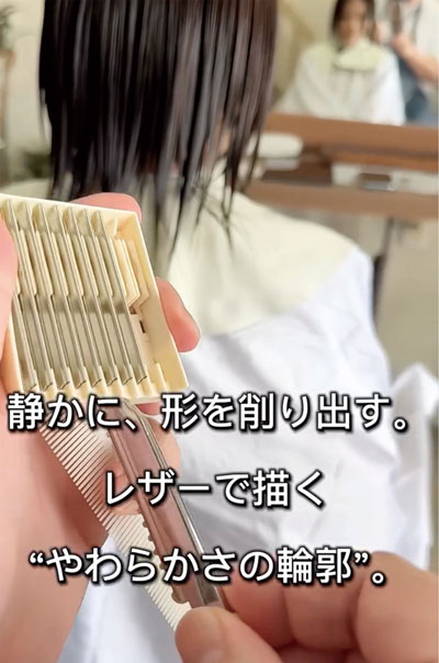 ロングヘアにレザー&シザーを組み合わせ、質感にナチュラルかつ繊細な動きを加えたカットがすごく魅力的。レザーの使い方に新たな可能性を感じ取れた動画でした。