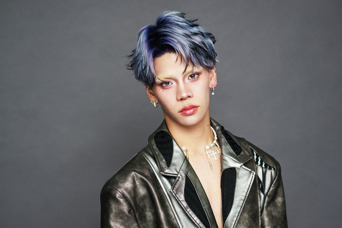 ランダムに入れた毛先のブラックが、流動感とまとまりを際立たせるスタイル。根元をかなり暗くしてコントラストをつけ、トーンによるグラデーションで、冬に似合う優美でエレガントなブルーバイオレットに。model: mmgouken