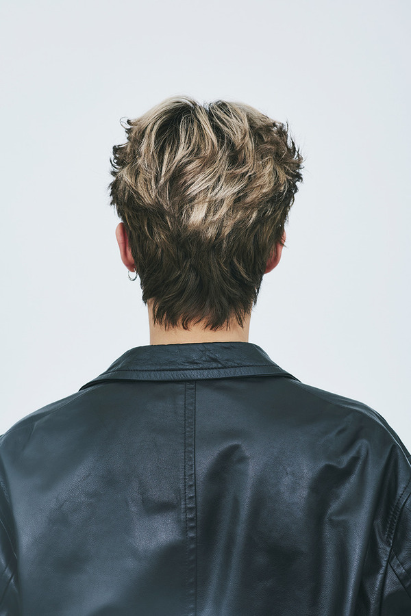 根元のシャドールーツと毛先の細かなエンドカラーが、フェザーショートの動きを際立たせる注目スタイル。ホワイトブロンドとブラックの配置が立体感と抜け感を両立。トレンドのレイヤー感で顔型になじませた軽やかなスタイルは、冬のストリートにピッタリ。model: Mikado Sena