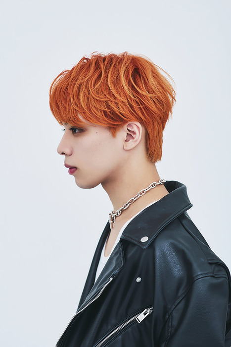韓国風スタイルにワイルドで無造作な動きをプラス。鮮やかなオレンジがロックなスタイルに仕上がっている。暗めの色になりがちな冬服にも映える差し色カラーで個性を引き立てる。就活を終えた大学生や、新しい自分を表現したい人にぴったりの卒業前ヘアの提案だ。model: Uehara Shoma