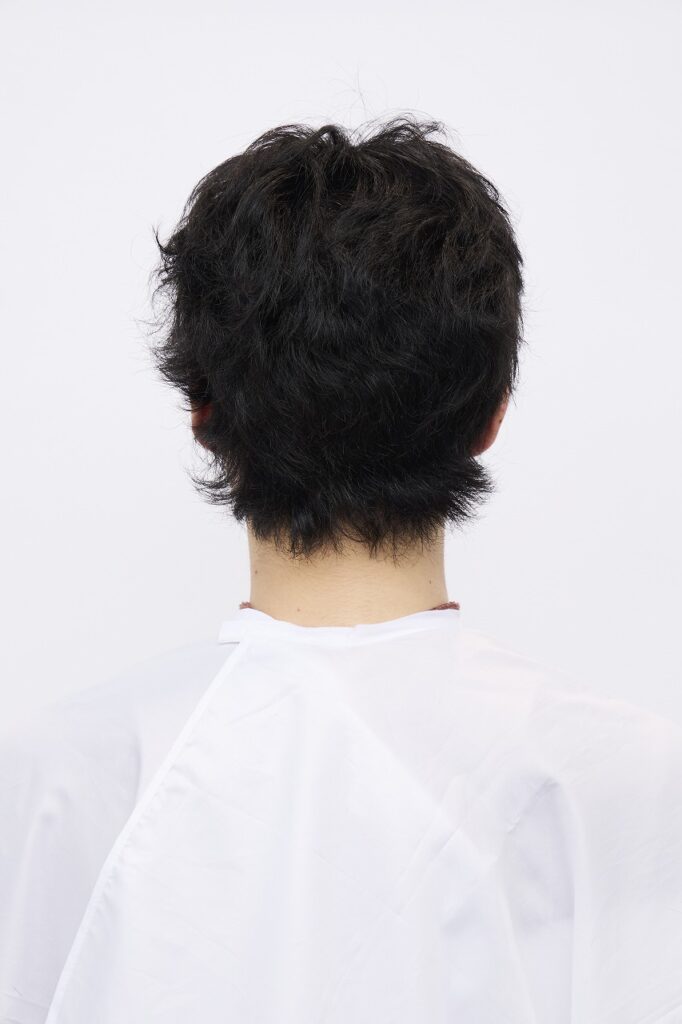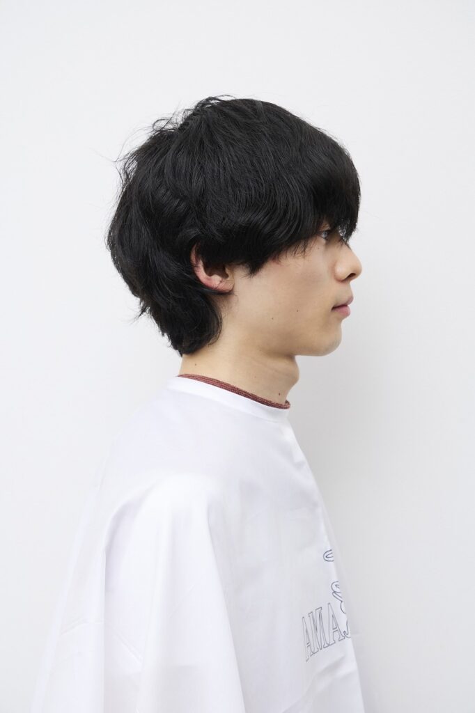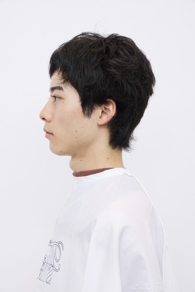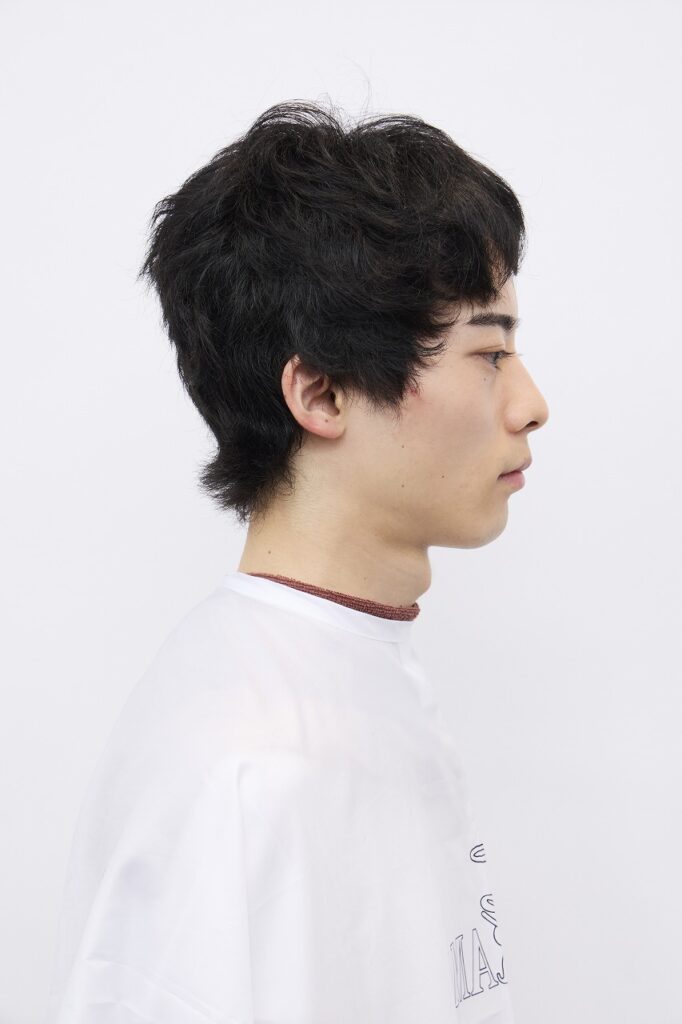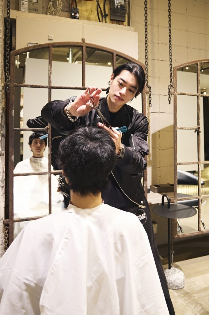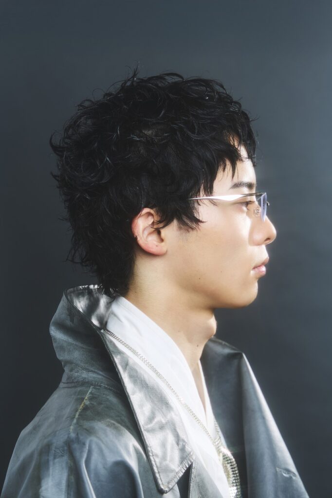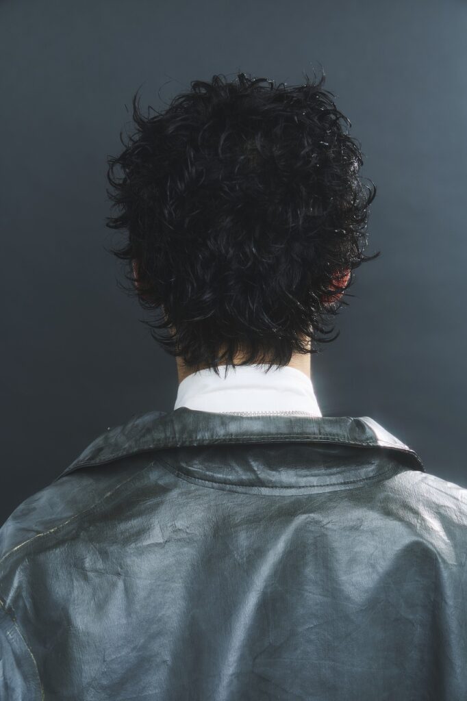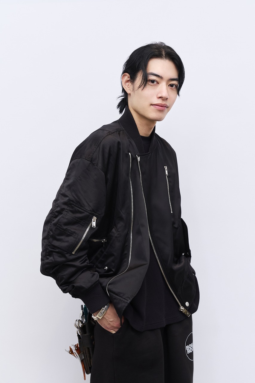 「今回のモデルはおしゃれが大好き。彼のファッションを楽しむ気持ちを髪でさらに引き上げることが僕らの仕事だと思います。そこで普段スタイリング剤をほぼつけない彼に対して強いウェット感を合わせてみました。僕自身グリースを使うのは今までほぼなく、オイルやフォームなど軽いウェット感の提案まで。グロッシーな髪をどう動かすとカットで入れた遊びが映えるか。探るのが楽しかったですね」