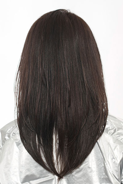 「表面と顔まわりに施したレイヤーが軽さと柔らかな動きを引き出した、誰でも挑戦しやすい万能デザイン。ペタッとしやすい髪質でも、レイヤーを入れることでふんわりとしたナチュラルなボリューム感を得られます。レイヤーで軽さを出すとパサついて見えますが、それを防ぐため、ラベンダーカラーでツヤ感をプラス。扱いやすさもピカイチな好感度抜群のミディアムレイヤーです」