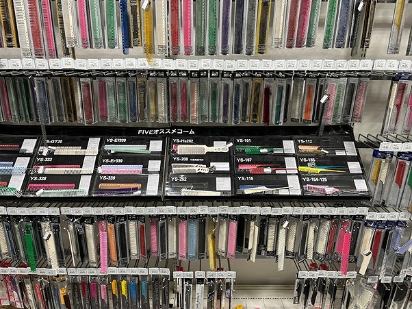 カラー剤から備品までサロンユースの理美容商材を「見て、触って、相談できるお店」として、理美容師・理美容学生から支持を得ている会員制のプロショップ「ファイブ」。表参道、池袋(西口)、吉祥寺、梅田茶屋町、名古屋駅前に加え、6店舗目が池袋東口店が11月21日(金)にグランドオープンした。取り扱いアイテムは、カラー剤、パーマ剤、カットウィッグ、ハサミ、アウトバス、シャンプー、トリートメント、美容家電、ブラシ、コーム等理美容品まで、約100ブランドおよそ1万点。充実したコーム・ブラシコーナーは必見。理美容関連の厳選された雑誌・書籍コーナーもあり、池袋駅から徒歩5分とアクセスもよく、新たな情報発信基地としても期待大。