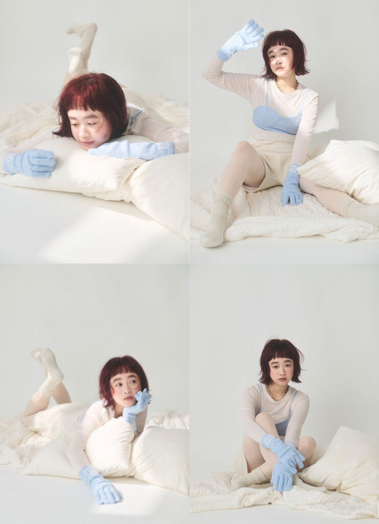 溶けていく美。雪のように儚く消える美しさを、何度でも生み出す。雪はキラキラと輝いてきれいだけれど、いずれ溶けて消えてしまう。その刹那的な美は、美容師の仕事にも通じる部分があると思い、今回のテーマに選びました。美容師はお客さまに美を提供しつつも、それは永遠に続くわけではなく、時間と共に変化します。でもそのたびに美容師は新たな美しさをお客さまに提供できる存在。繰り返し美しさを生み出す美容師の仕事に、私は誇りを持っています。髪に触れながら、その人の心にも触れる瞬間がある。その一瞬を大事にしながら、日々サロンワークに励んでいます。今回の作品は、ヘアはあえてドライな質感で、寝グセのようなラフさを表現。メイクはリップとシャドウはヌーディな色味で抜け感を出しつつも、細かいラメを散りばめて冬のキラキラ感を演出。思った通りの世界観をつくることができてとても満足しています。