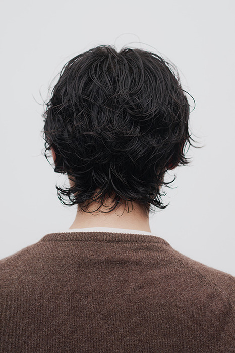 PERM/17〜13㎜のロッドで、えり足は逆巻き、全体はスパイラル巻き。ステムの角度や巻き方を変え、ボリュームの強弱を調整することで骨格を補正する。
