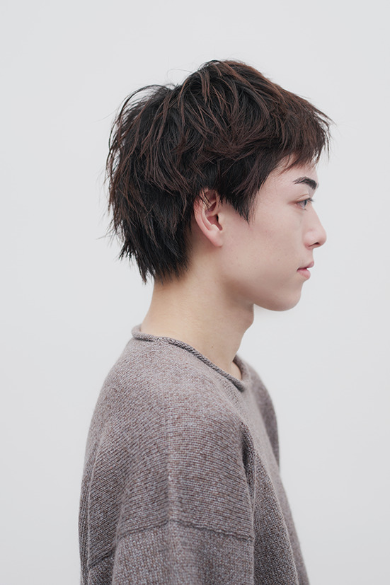 緻密に計算された束感がポイントの中性的なスタイル。寝起き風のラフな毛束の動きがニットの温かみとマッチし、ふんわりとやさしい雰囲気を感じさせる。かわいさと大人らしさのどちらもが同居するスタイルは、ジェンダーレスなファッションを好む人にぜひ試してほしい。model: Hiura Kaede
