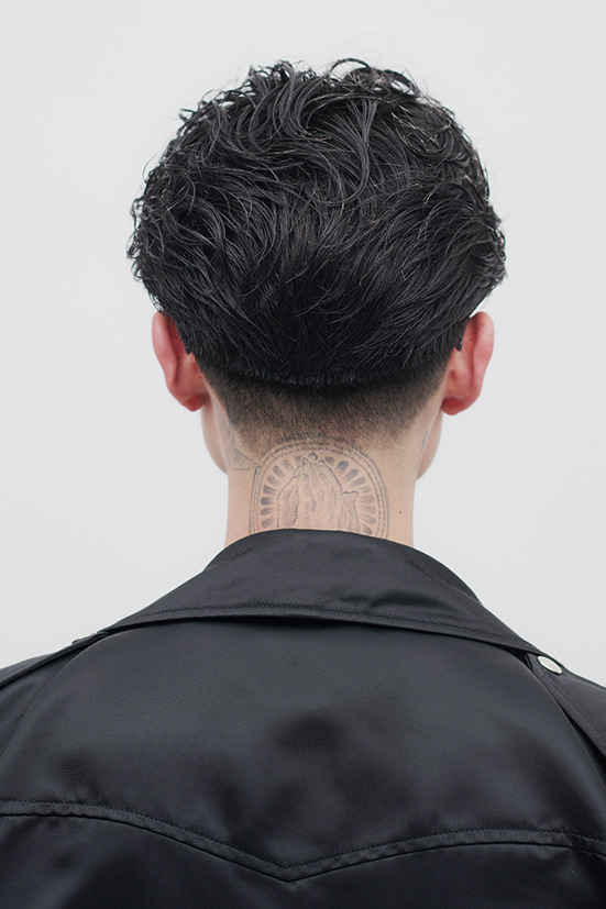 CUT/ショートグラデーションベース。サイドとバックに重さを残し、後頭部がつぶれないよう丸みを意識してカットする。えり足は3㎜からのグラデーションで首に沿わせる。トップは低〜中レイヤーで立ち上がりを確保。フロントは長めに設定する。PERM/14〜10㎜のロッドで平巻き。薬剤は弱めに設定して、ルーズな動きを演出。