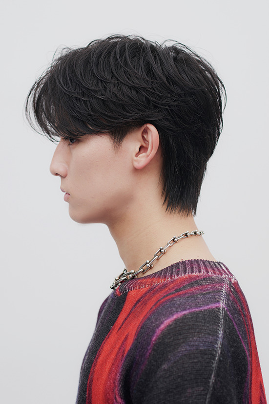 外国人風の柔らかな表情の質感と、躍動感の両方を備えたセンターパートスタイル。あえて動きが出すぎないように重さのボリュームをキープしつつ、前髪のこぼれ毛を効かせて全体の印象をコントロール。上品さとカジュアルが共存する絶妙なバランスがポイント。model: Kaima