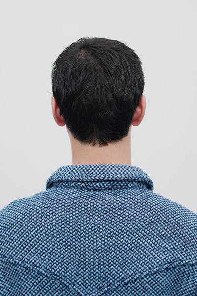 柔らかなクセ毛風の質感を、タイトなシルエットに仕上げたベリショスタイル。直毛でも自然な動きが出るようピンパーマを施し、前髪はタイトに収めながらも柔らかな印象のバランスを重視。ボリュームが出やすい冬服は、端正でありながら少しナードな気分のショートがハマる。model: Kajiura Kotaro
