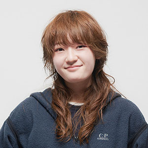 CUT/前髪からサイドに向かってマッシュラインでカット。バックは前上がりのワンレングスベースにカットし、ハチ上にレイヤーを入れる。COLOR/なし PERM/前髪は15~17㎜で平巻き。トップのモヒカンラインは21㎜で平巻きに。バックはアンダーからトップに向かって19~23㎜でスパイラル巻き。サイドは顔側に引き出し、21~23㎜で平巻きに。STYLING/髪を濡らしてからパーマ用フォームをなじませ、自然乾燥。