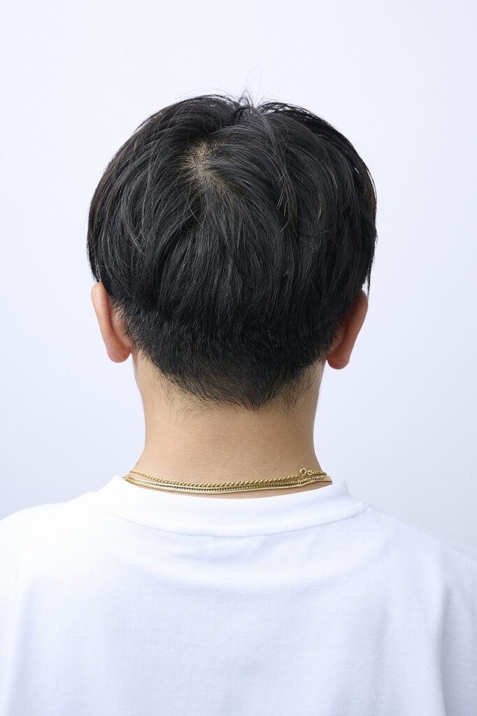 サラサラとした柔らかい髪質。太さ、毛量は普通。半年前のメッシュが毛先に少し残っている。