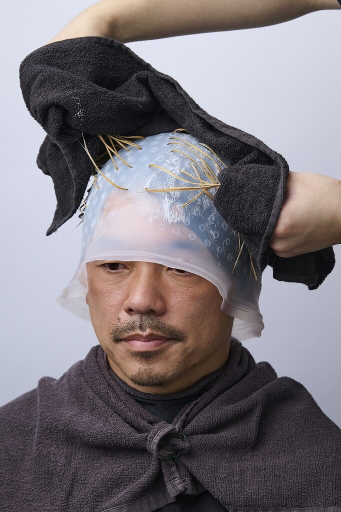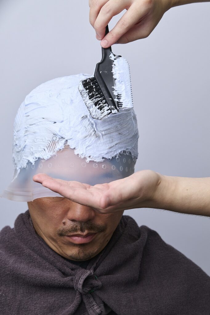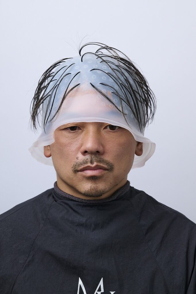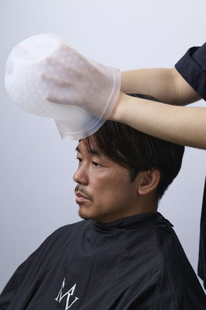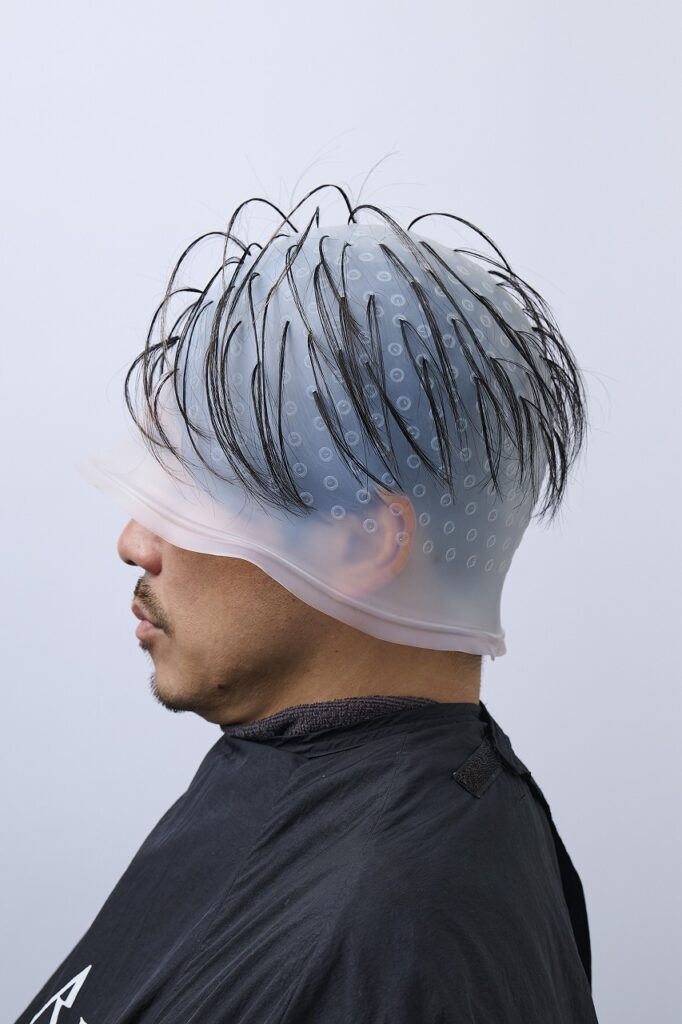 菊池 (メッシュキャップをかぶって) 久しぶりだなあ、これ。キャップをかぶるので地肌に薬剤が付かず、安心ですね。