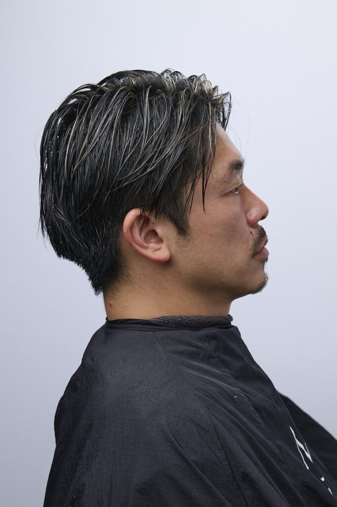 菊池さん(以下菊池) お願いします。(メッシュを) 前に入れたとき評判がよかったんですよ。最近、髪がつぶれやすいのもちょっと気になっていて。