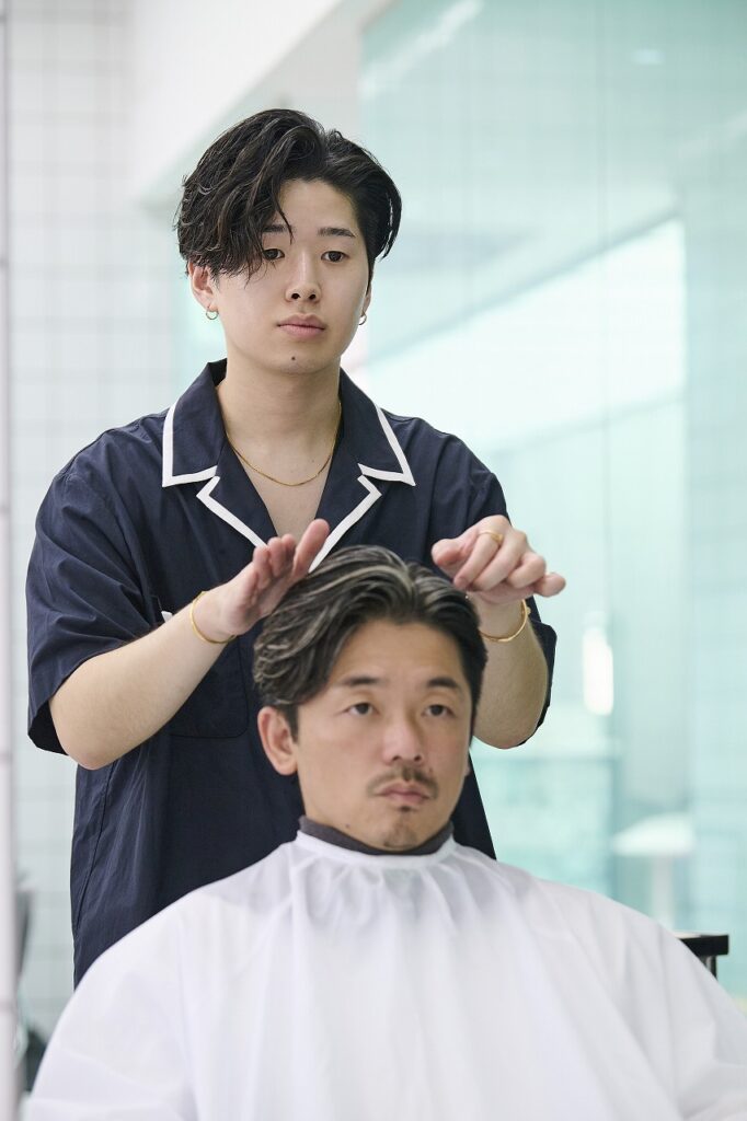 こやましょうま。『ミユーズ 渋谷フラッグ』スタイリスト。埼玉県理容美容専門学校卒業。大人世代へのハイライト「白髪メッシュ」が話題に。連日多くの顧客が通う。@miyus_shoma