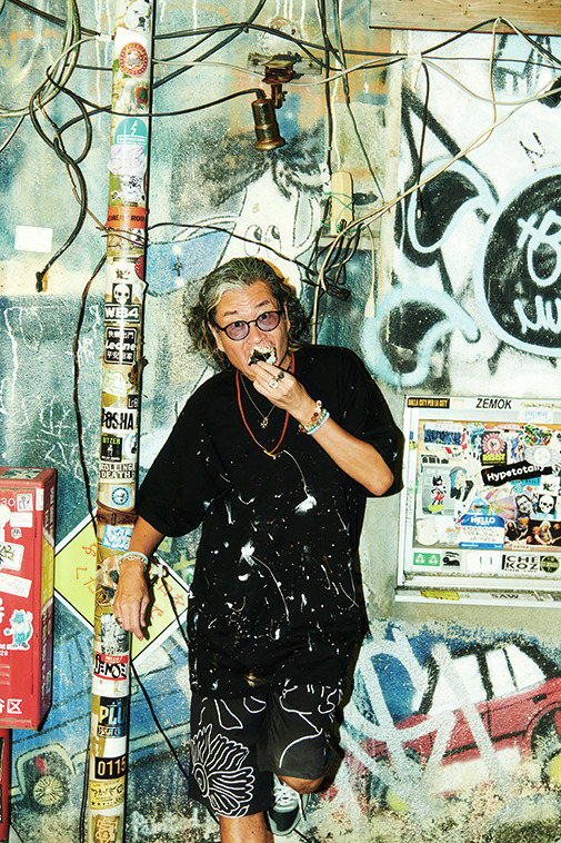 「服飾、ファッションというカルチャーへの愛情。それが古着と向き合うときに僕がいつも感じることです。時を経た服のダメージ具合はもうその服だけの個性だし、場合によっては自分が昔買って捨てられないTシャツのヨレ具合がイイなと思ってやっぱり着続ける感じ。最近気になるのは古着なんだけどアーティストがペイントをしたりグラフィックを描いたりして、服を新たに生まれ変わらせた作品。これこそファッションへの愛とリスペクトそのものではないでしょうか。下北沢という街自体にも実はそんな魅力もあって、こんなに世代交代がうまく機能している街はあるかなと思います。昔からここにいる僕たちも、10代や20代も魅力ある街として楽しんでいる。少しずつ生まれ変わりながら新しい価値を生んでいる街ですね」
