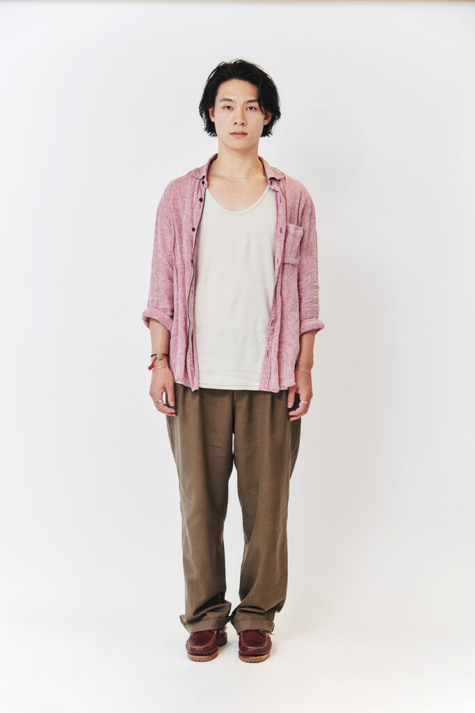 シャツ(vintage)/¥22,000、インナー(無印良品)/¥1,500、パンツ(vintage)/¥17,000、シューズ(ティンバーランド)/¥25,300