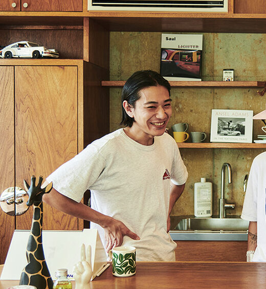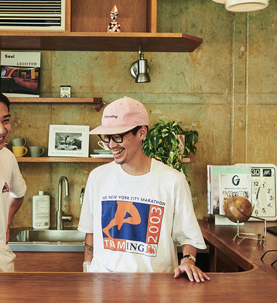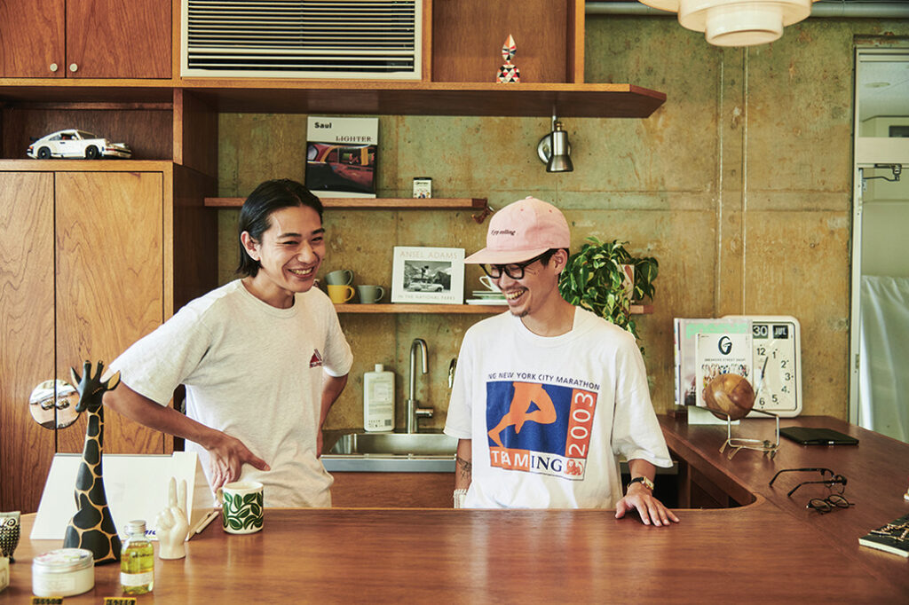 「古着って買ったばっかりでも、昔から自分のクロゼットに入っていたみたいな雰囲気があるのが好きなんですよね。ずっと着てたような質感、はげたプリントとか、イイ感じのシミとか、一つひとつに個性があるのが魅力です。それってやっぱり下北沢ともマッチしていて、僕にとって下北沢ってどんな個性も尊重してくれる場所なんです。いろいろなかたちで自己表現している人がいて、僕らみたいな店も受け入れてくれているのが下北沢です(笑)」(岡安)
