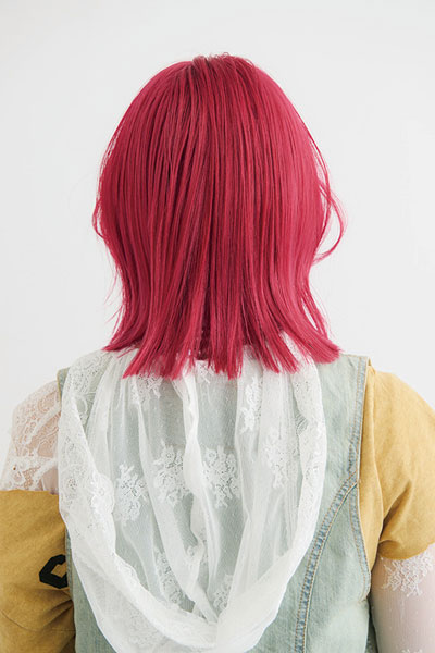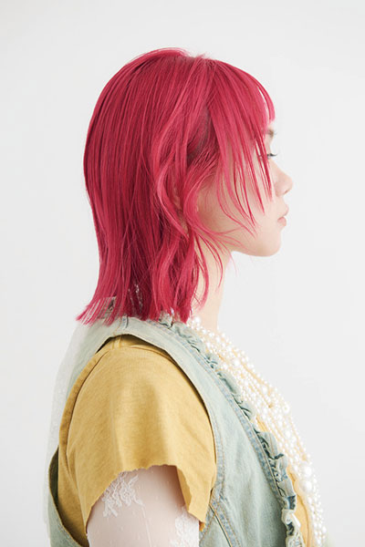 ブリーチ(根元2㎝):アクセスフリー パウダーブリーチ〔ox6%〕/ナプラ ブリーチ(中間~毛先):アリミノ ブリーチ 120〔ox6%〕/アリミノ ベース: 「カラーミューズ」PINK:VIOLET=1:10%/資生堂プロフェッショナル