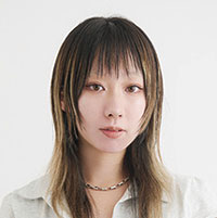 CUT/肩レングスのワンレンベース。耳前にほお骨からレイヤーをオン。前髪は目尻幅で眉上2㎝にカット。サイドバングは顔まわりにつなげる。耳前のみセニングで質感調整を。STYLING/ストレートアイロンでツヤを出し、耳前の動きを出したい部分にウェーブをつくる。顔まわり1線はあえてストレートで毛先を内に入れる。オイルとバームを全体に塗布し、耳前の毛先のみバームで動きを。仕上げにツヤ出しスプレーを。