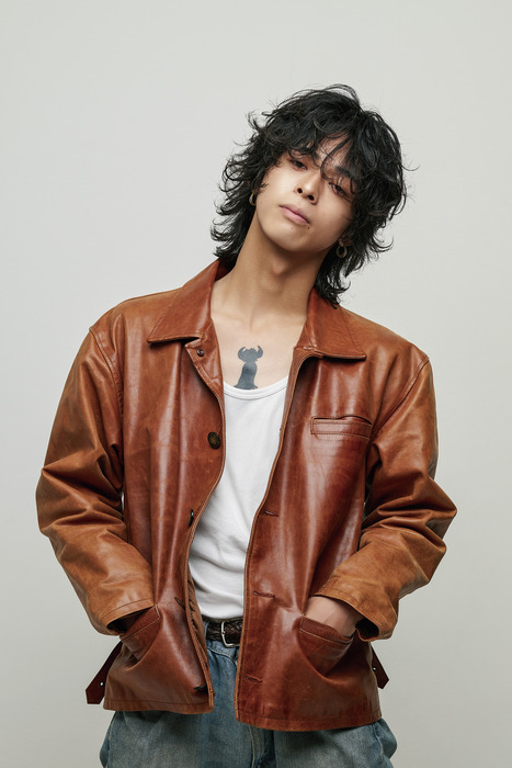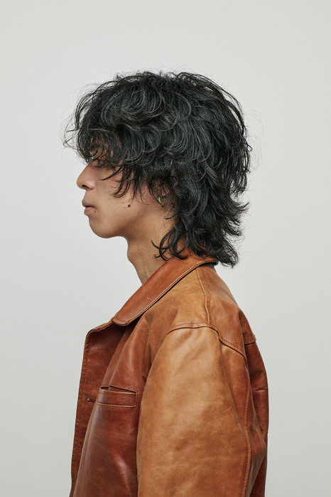 ワイルドなウルフスタイル。作り込まなくてもキマる男らしい野暮ったさが色っぽい。高めに入れたレイヤーと動きのあるパーマで抜け感を作ったので、これから重みを増していくファッションにもフィットするし、伸ばした髪を切りたくないけど雰囲気を変えたいときにもピッタリ。model: Misumi Ryusei