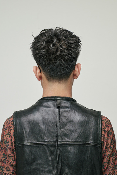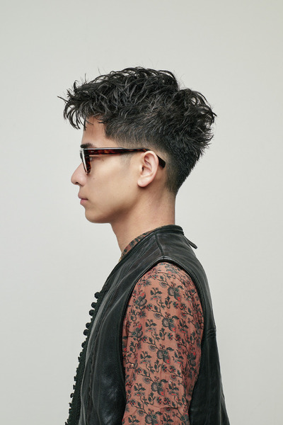 80年代のイギリスの雰囲気をイメージしたベリーショート。トップは角を残してスクエアなシルエットにしたのがこだわり。ベリショでも毛先が動くだけで大きく印象を変えることができるし、短髪にすると髪が張ってしまう髪質もカバーできるので、短髪×パーマはオススメ。model: Yamano Ryuta