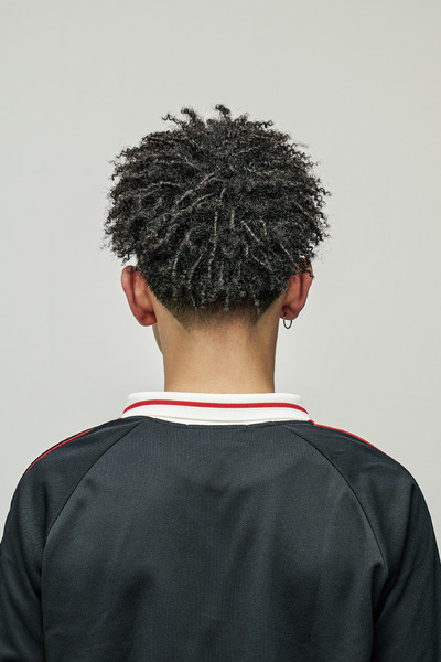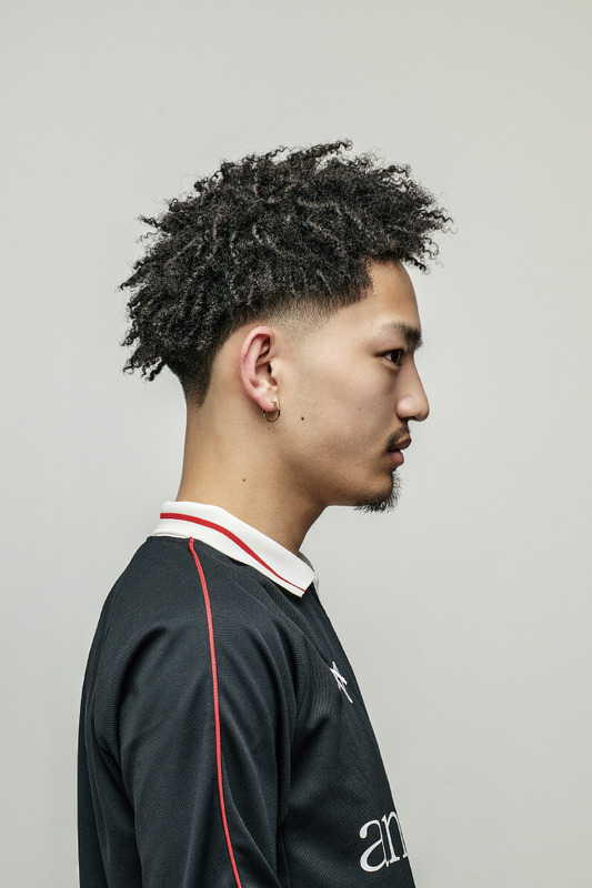 海外のスポーツ選手をイメージした針金パーマスタイル。スパイキーアフロのなかでは長めなので、束感を強調してパーマ感をアピール。低めにフェードを入れてトップのボリュームとメリハリをつけた。特殊パーマをかけたいけどお手入れがめんどうな人にオススメ。model: Chiba Yuito