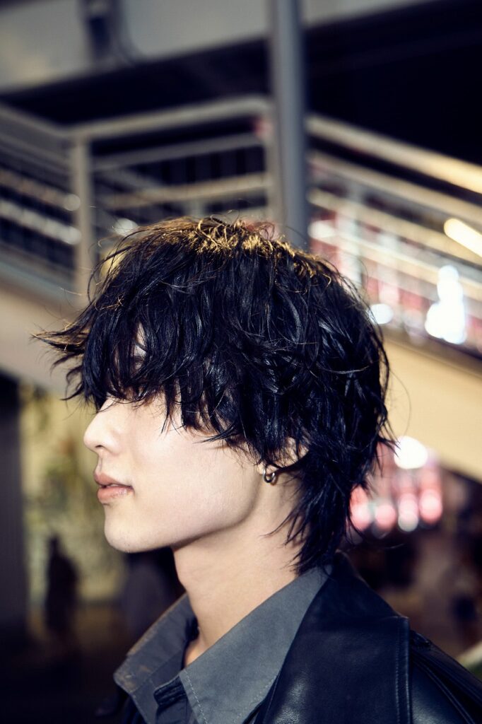 ラフな部分とていねいに計算された部分が互いを引き立て合うコントラストが秀逸なスタイル。野暮ったい重めウェイトのアウトラインが顔まわりの軽さのドキッとする色気につながっている。