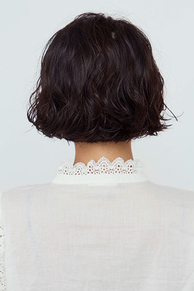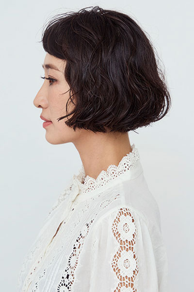髪がへたりやすい世代に、ラインを残したパーマでボリュームをプラスしました。また個性的なイメージがある短い前髪ですが、実はパッとおしゃれ顔になるデザイン。前髪が浮かないようピンパーマをすることで、外国人っぽくなり大人にも似合います。