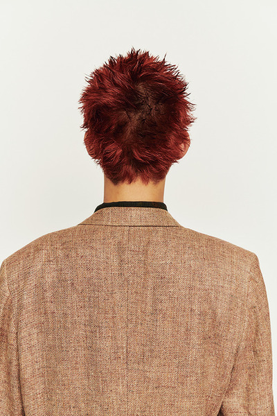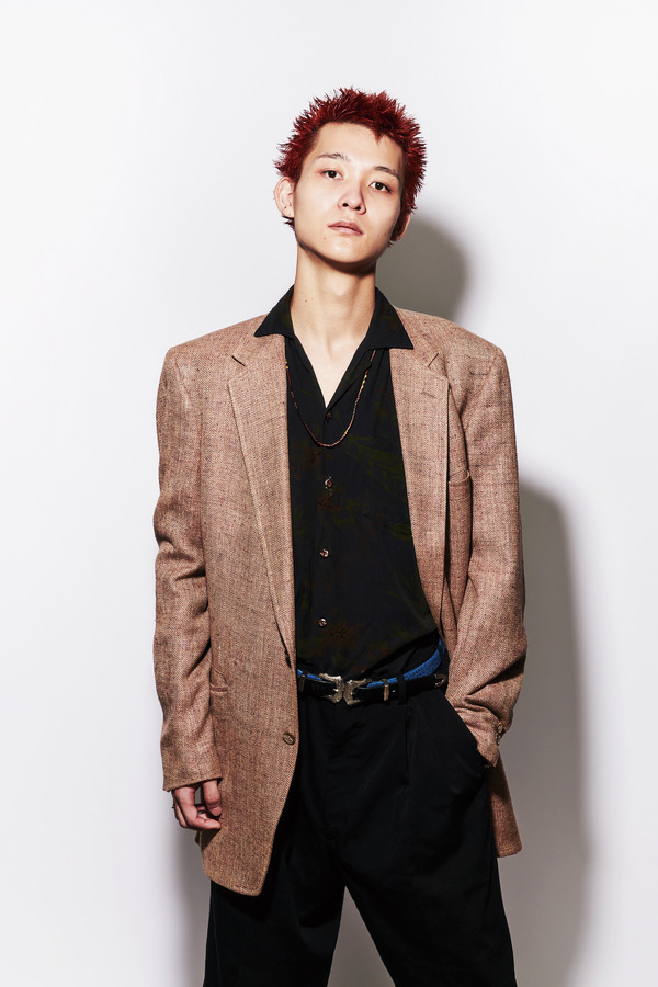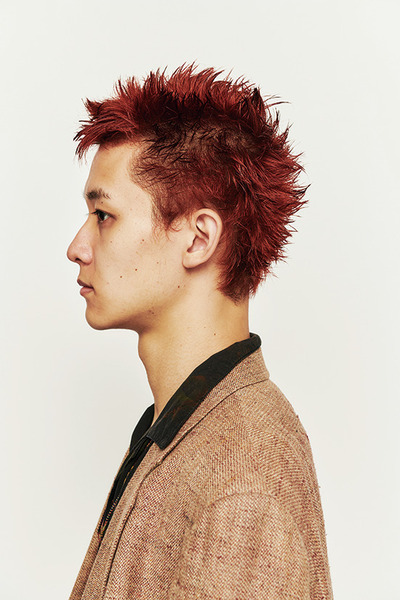 ザクッと潔く切り込んだ毛先がパンクなベリショートスタイル。適当に髪を立ち上げて、ツンツンさせた毛先が王道のヤンチャ感をアップ。雰囲気のあるワインレッドカラーでただのスパイキーでは収まらない色気を漂わせつつ、ブラウン味を入れることで落ち着いた印象に仕上げた。model: Yamauchi Yuto