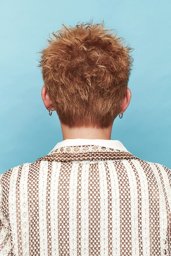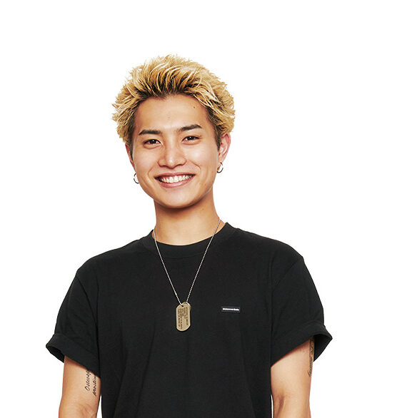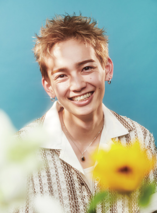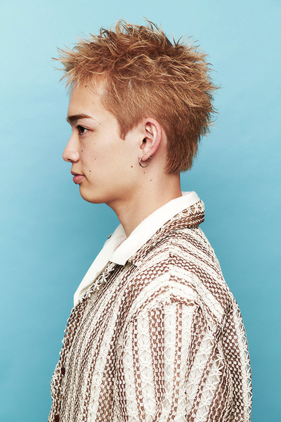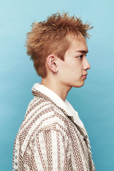 ショートスタイルが得意な優翔さん。花のように明るい人柄を表現した。「明るくて爽やかな印象のモデルさんなので、僕が好きな歌の歌詞にある『道端の花に話しかける』というシーンをイメージして落とし込みました。性格的にシルエットをキレイに作りたくなるタイプなので、スパイキーな躍動感をポイントにしました」