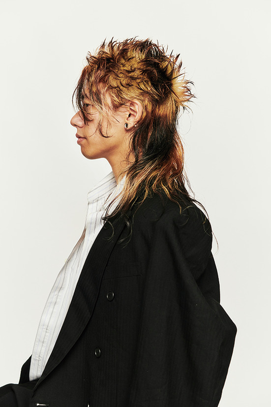 アニマルカラーが唯一無二のスタイル。マレットヘアをベースに長短で遊びを効かせたのがポイント。野性的なヘアにフォーマルなファッションを合わせるギャップ技で、「ワル」と「大人」がせめぎ合う男の魅力を引き出した。唯一無二なデザインを求めるなら、これっきゃない!model: Tori