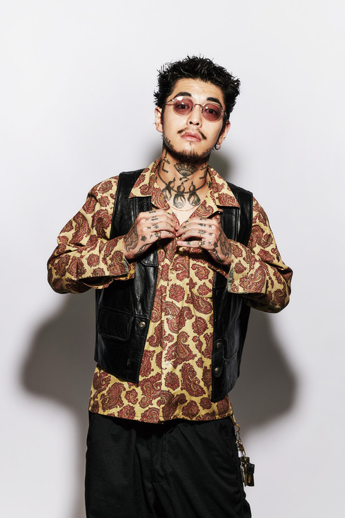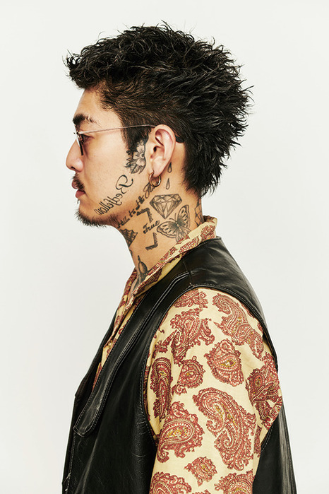 ルードと言えば、忘れちゃいけないのがロカビリー。そんな王道なイメージを、あえてサイドに角を作ることでクラシックスタイルのシルエットをオマージュ。さらに、人気の仏陀パーマをかけ合わせてストリート感もプラスすれば、男気溢れる洒落たお兄さんの完成。model: Ryuto レザーベスト/Lemontea