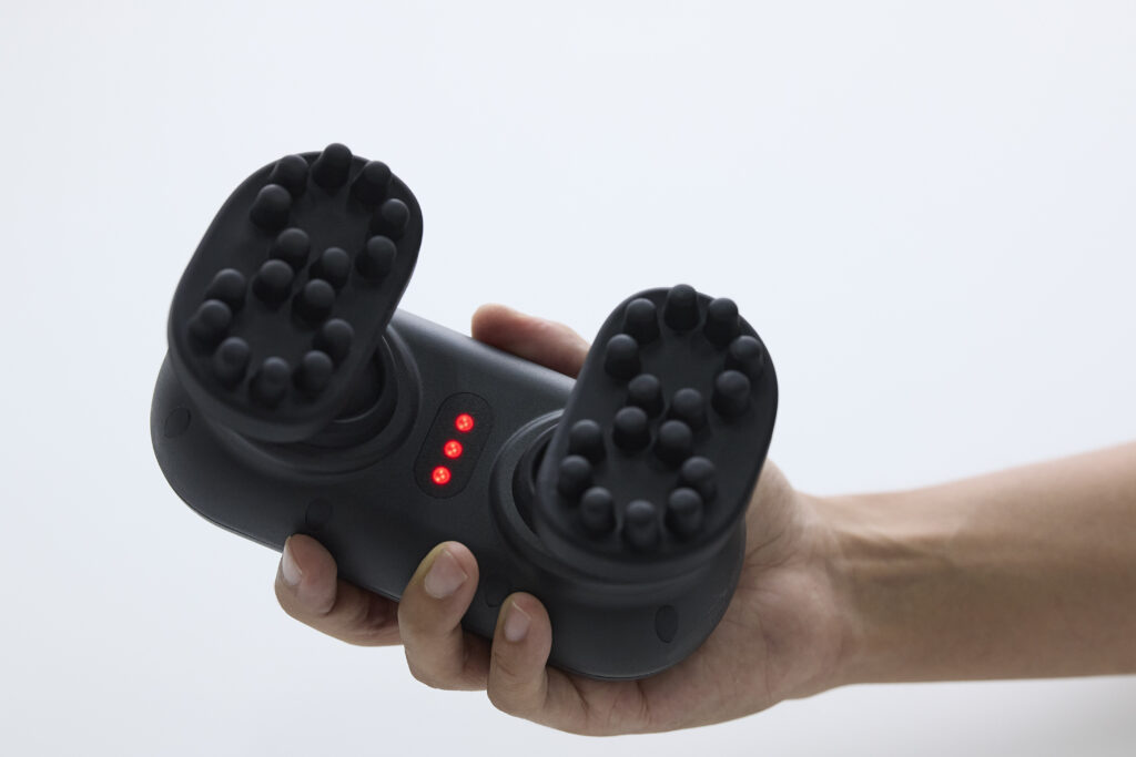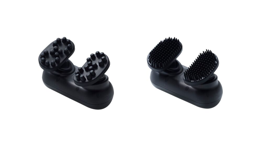 このEMSヘッドスパは2つのブラシが斜めに回転するため両手でヘッドスパを受けているかのような気持ちよさを体感でき、しっかり頭皮を揉み上げてくれる。