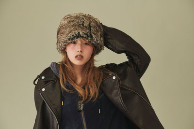 インパクトのあるロシア帽を追加。一見難しそうなアイテムも髪が自然にくびれ、今っぽくラグジュアリーな雰囲気を醸し出す。