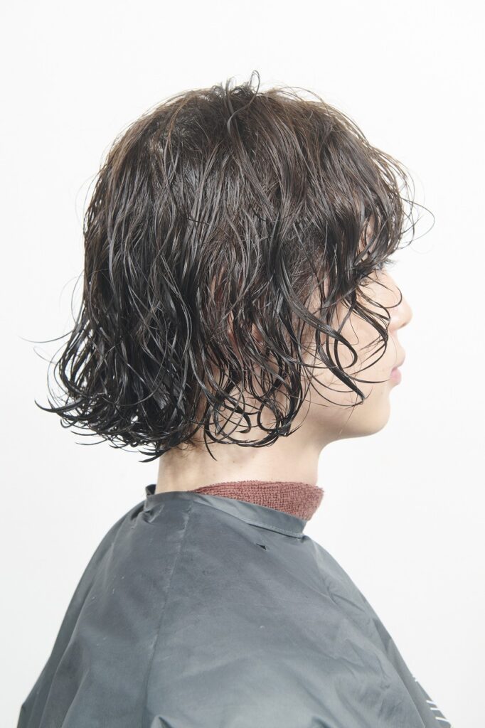 柔らかいニュアンスたっぷり。それでいてリッジもきちんと効いているパーマデザインが完成。