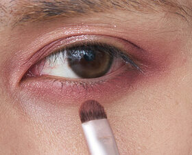 「ヨンジュンさんのメロさの特徴は、ちょっとだるそうな、エモーショナルな雰囲気をメイクで作っている点です。ポイントは、色と質感と自然ににじみ出るエモさ。ピンク系、淡い系、くすみ系の色味を使って、ツヤ感のあるぷっくりした印象に仕上げると近づきます。目元の印象が強い分、チークやリップで引き算するとバランスが取れます。特にチークは女性っぽさが出やすいので、縦に入れるのがポイントです。女性の場合、中央に丸く入れて多幸感を出しますが、男性の場合はほてっているように見せるのが正解。また、ポイントメイクをしっかり作り込むので、濃くならないようにすることがうまくいくコツでもあります。アイシャドウやチーク、リップなど、グラデーションにして、自然ににじみ出るエモさを目指しましょう」