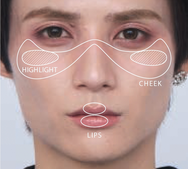 ほお骨の高い位置にハイライトを入れて、ふっくらとしたツヤ肌に見せる。